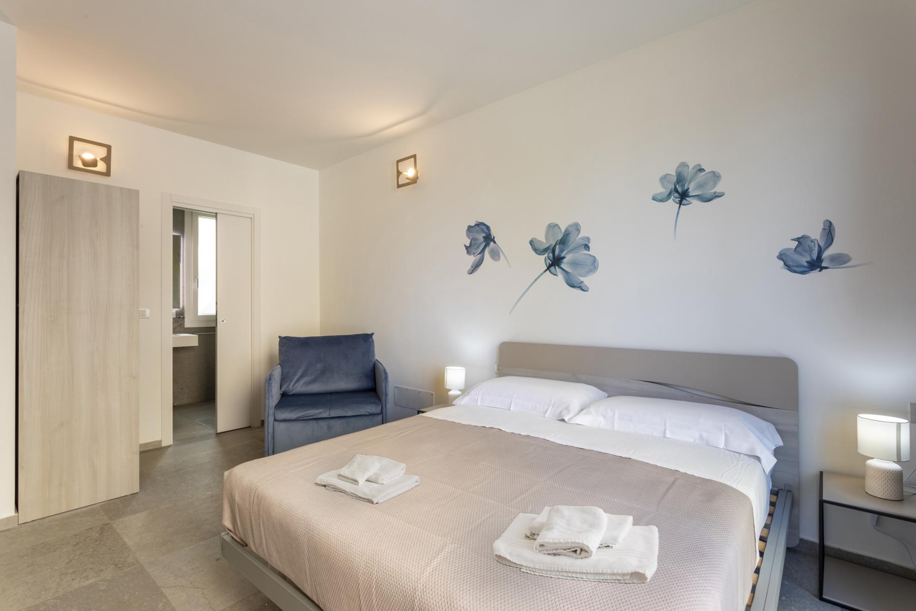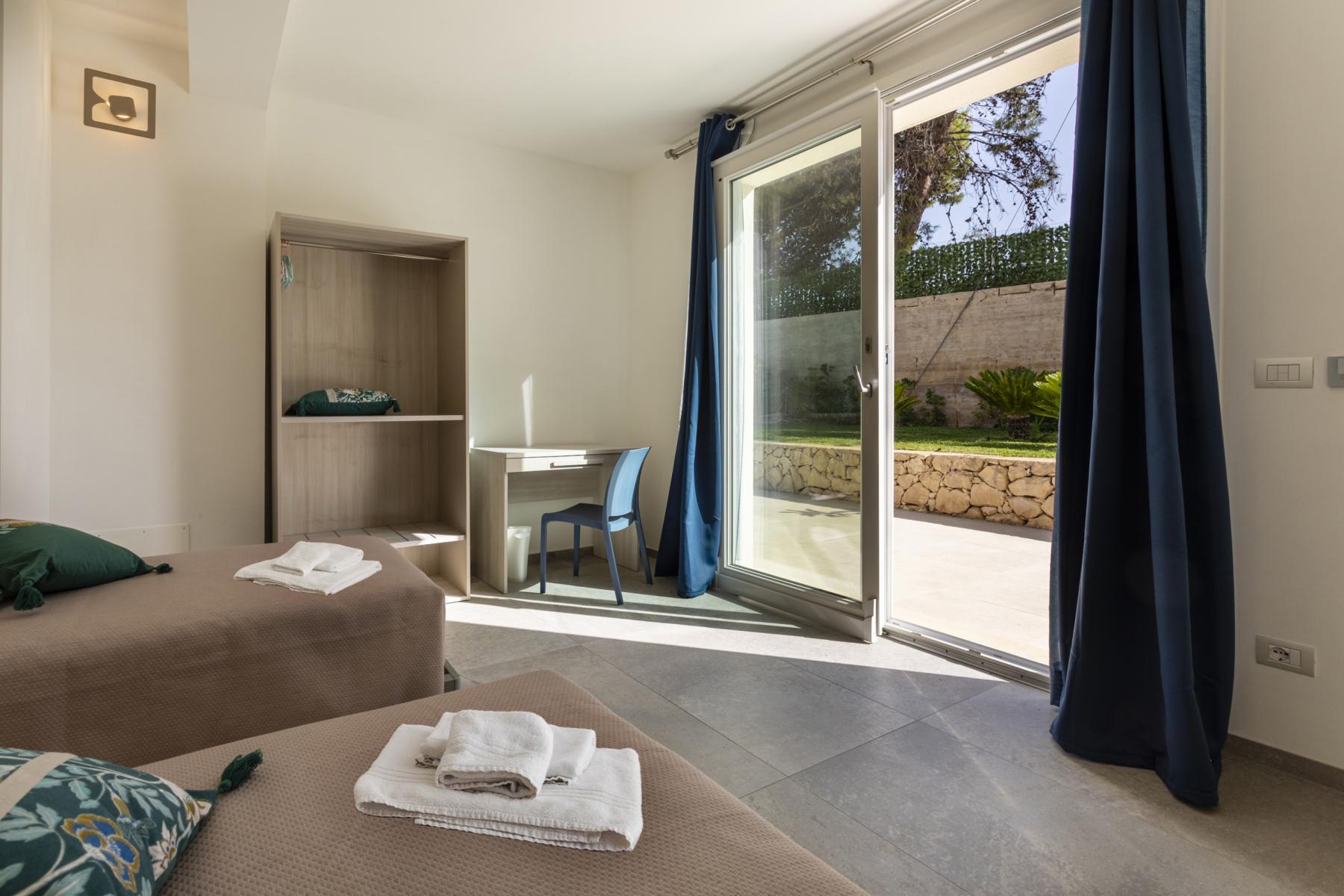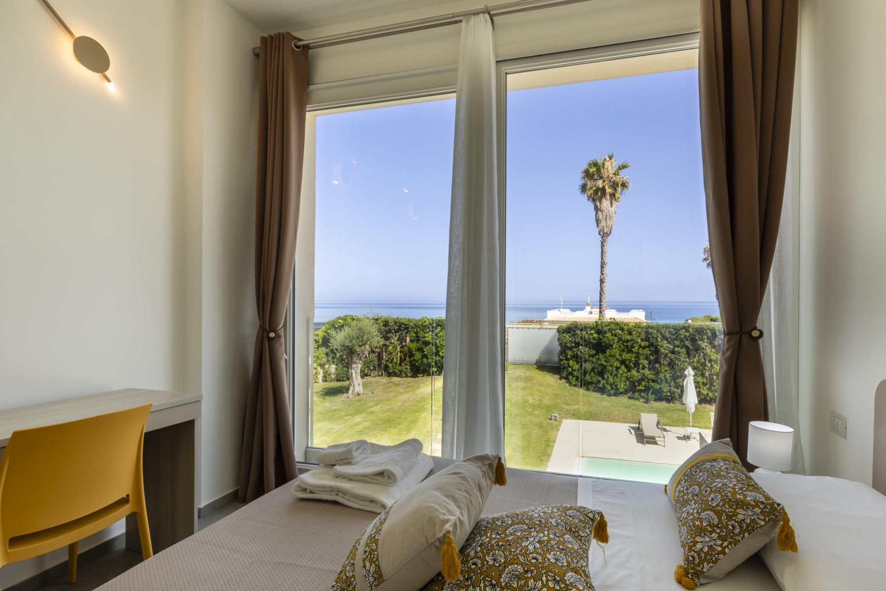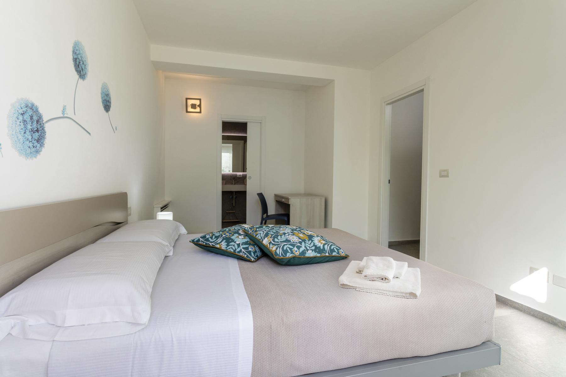 4 der Schlafzimmer befinden sich im Erdgeschoss und haben alle einen Eingang von außen: Das erste, an die Küche angrenzend, ist direkt vom Parkplatz aus zugänglich; Die anderen drei sind stattdessen vom Poolbereich aus zugänglich.