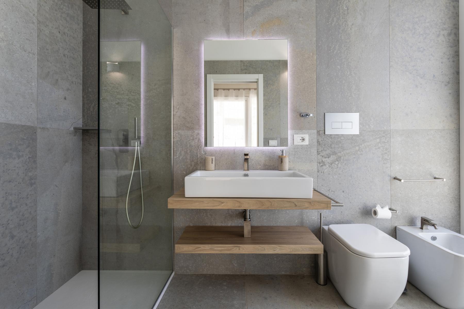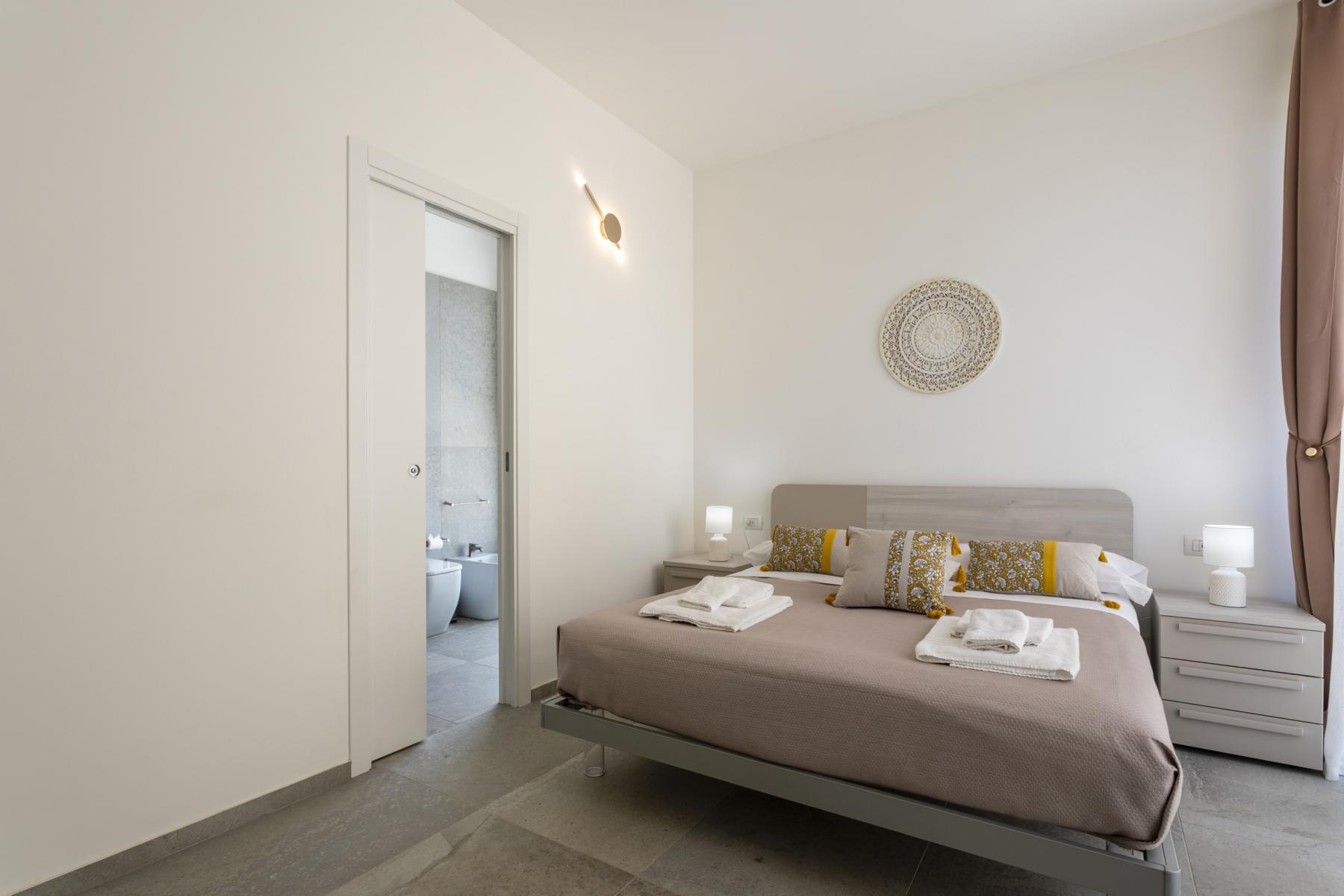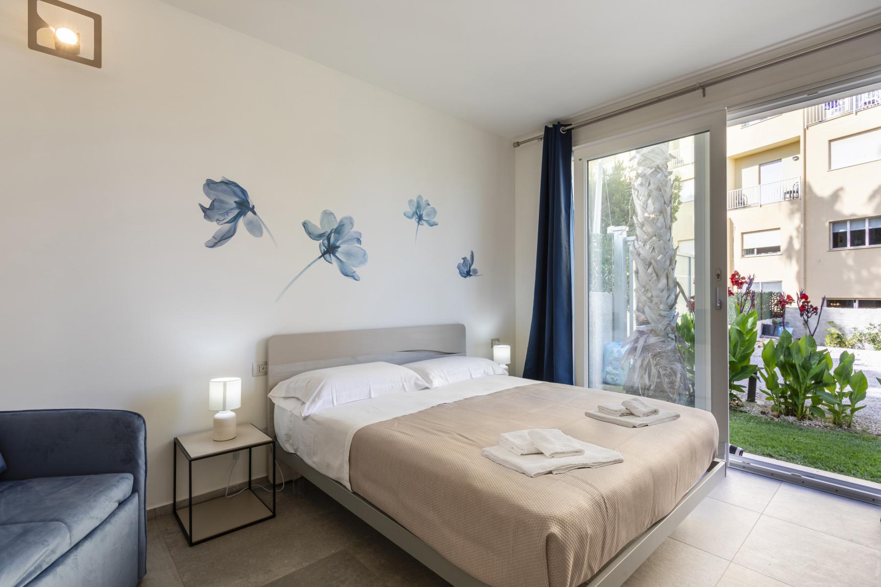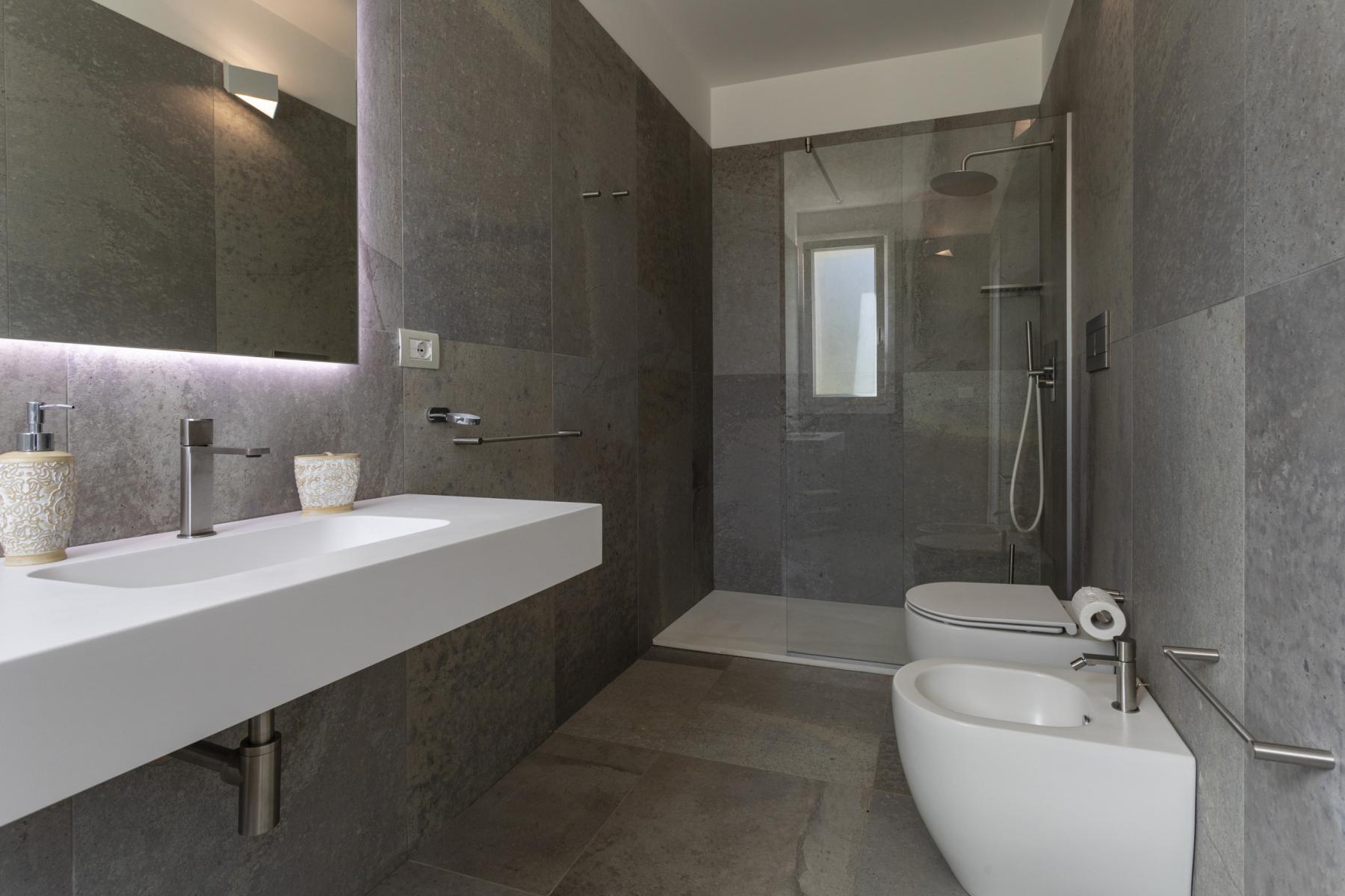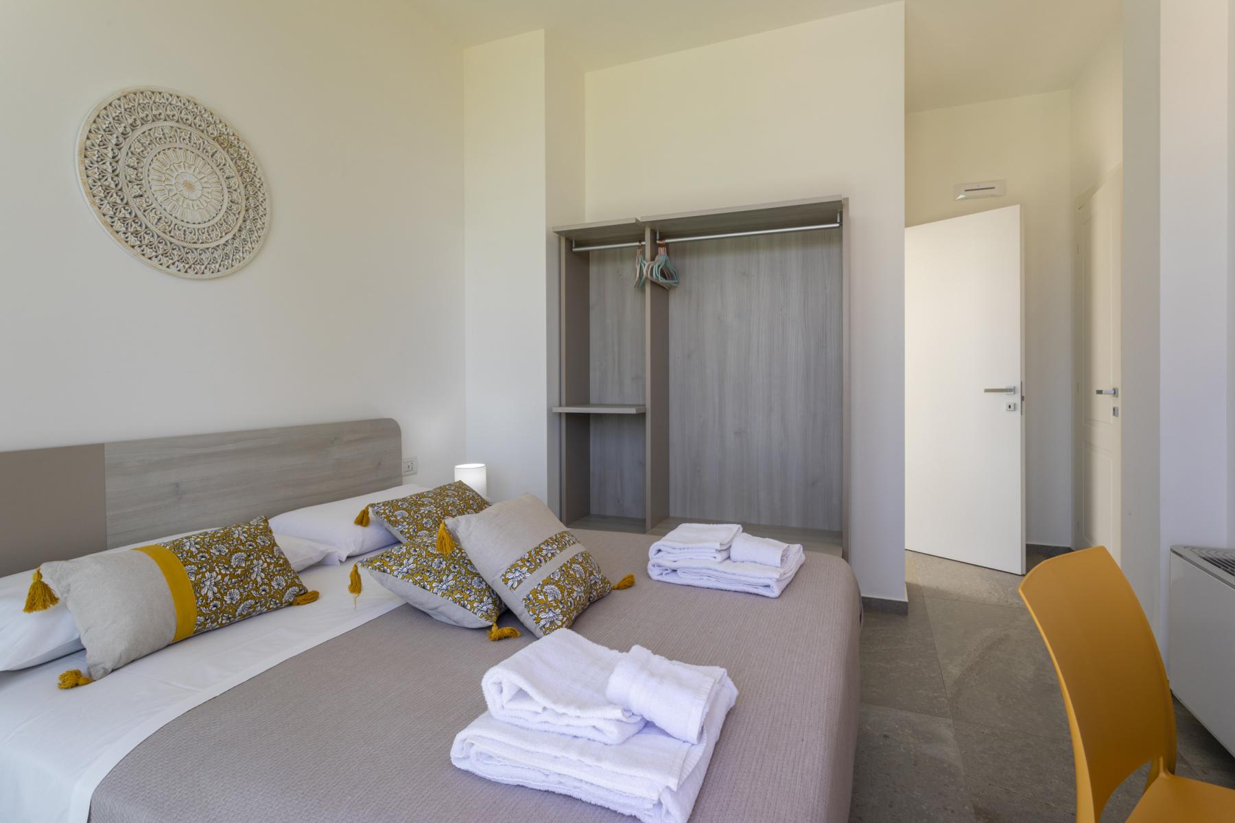 4 der Schlafzimmer befinden sich im Erdgeschoss und haben alle einen Eingang von außen: Das erste, an die Küche angrenzend, ist direkt vom Parkplatz aus zugänglich; Die anderen drei sind stattdessen vom Poolbereich aus zugänglich.