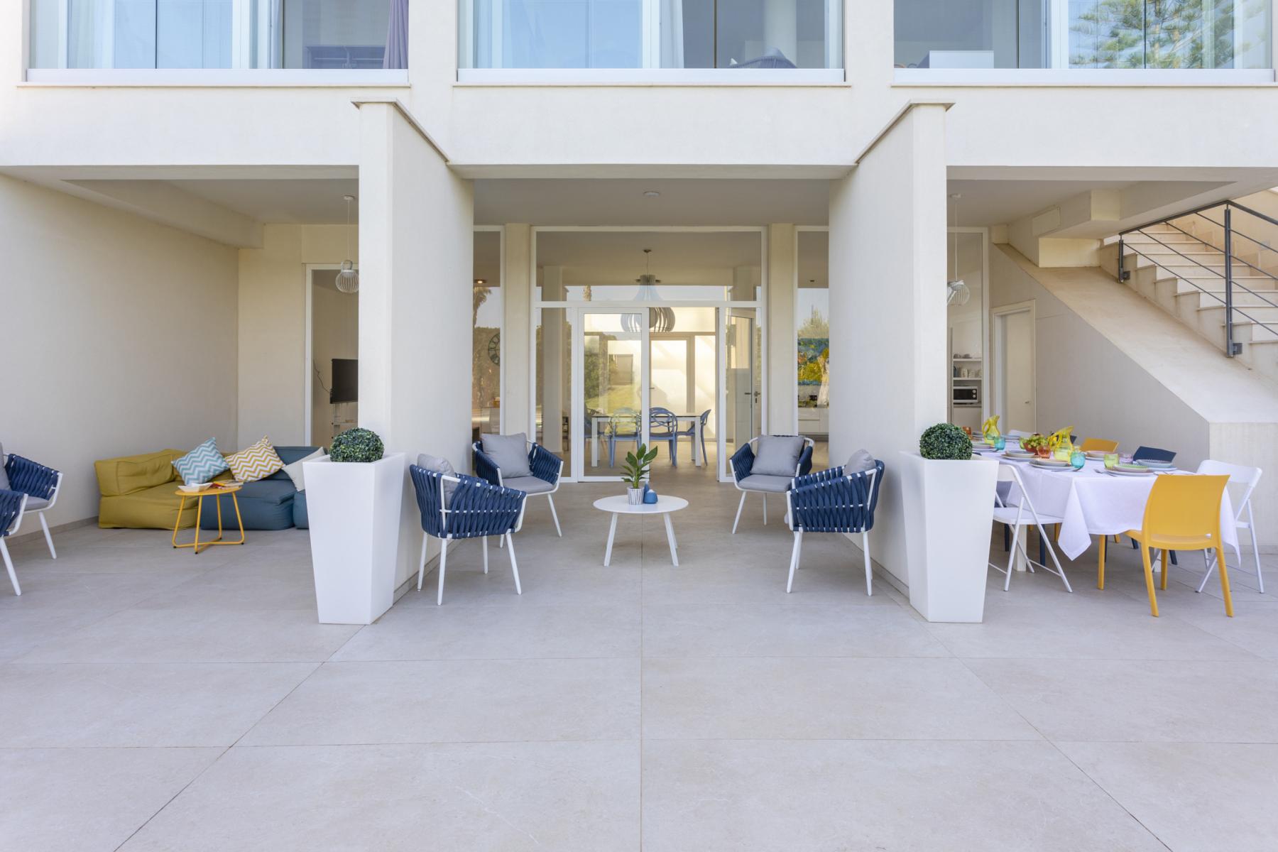 As an extended family of 10 we had a great stay in this lovely, spacious villa. All very clean and modern. The pool and gardens are the best part of the villa - pool is large, clean and the shallow jacuzzi end is very refreshing on a hot day. The gardens provide plenty of shade and are beautifully maintained. We had some issues with the air conditioning for the first 2 days. Guilia the host is very responsive and Guiseppe got it all fixed by the 2nd night. The area is pretty, with a small beach just over the road (access via an underpass in the hotel next door - good to know if anyone has mobility issues). Next nearest beach is a walk along the road (no footpath), very busy (it was peak season), but lovely clear water. Good local restaurants, would thoroughly recommend Le Muse Restaurant (within Hotel la Corte del Sole) - beautiful food and a stunning view! Note - hotel next door has poolside music (can be a little noisy). Lovely holiday, with early and late check-in/out.