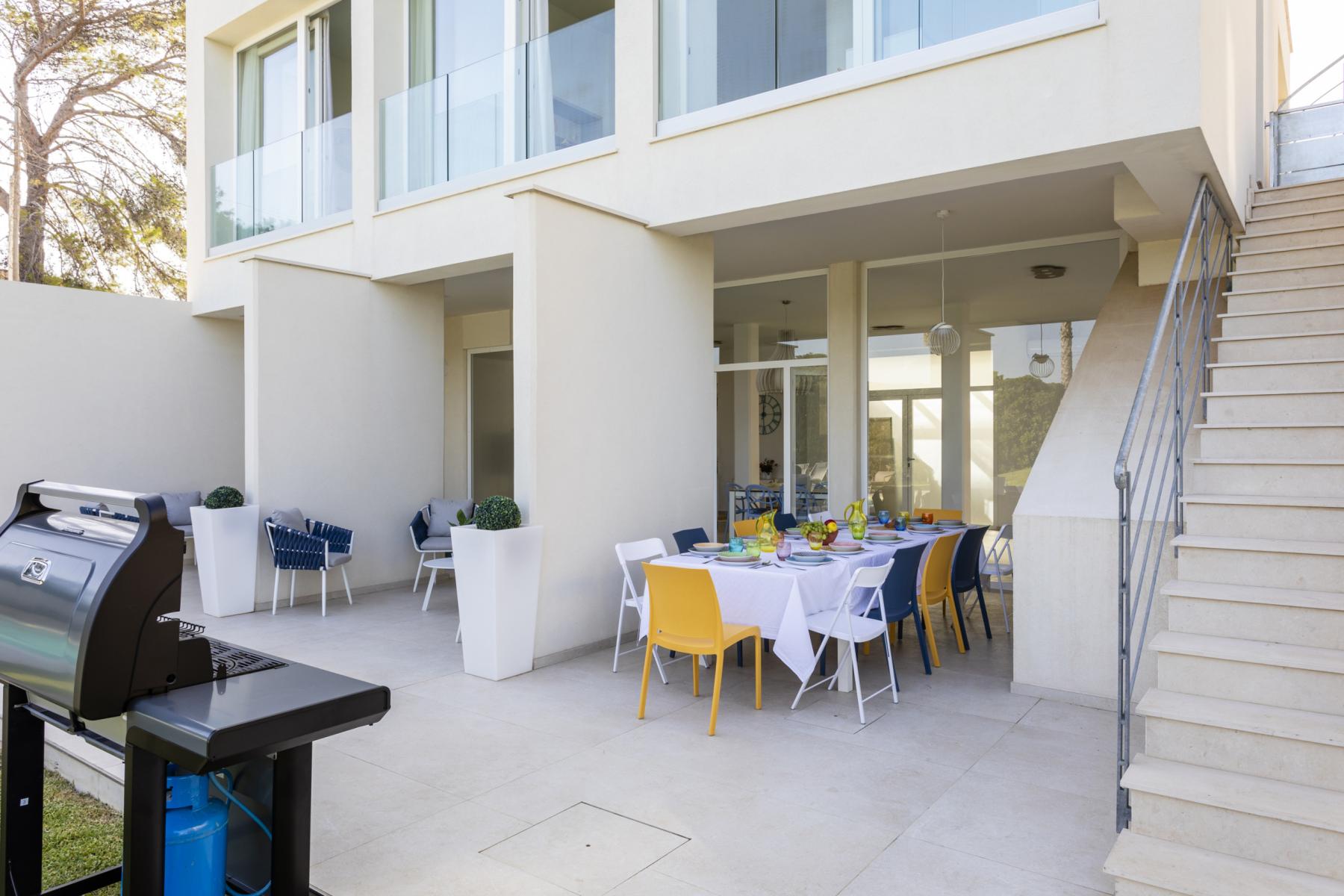 Der Zugang zum Erdgeschoss der Villa erfolgt entweder über den Parkplatz auf der Rückseite des Hauses oder über das Fußgängertor von der Hauptstraße aus, die zu einer Auffahrt führt, die den Garten in zwei Hälften teilt, so dass links der herrliche Swimmingpool und rechts der Ruhebereich übrig bleiben.